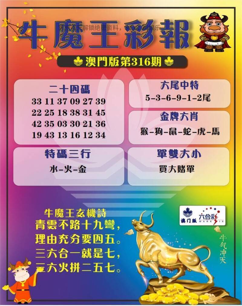 316期:七肖中特【牛鸡鼠马虎猪兔】开:马24中